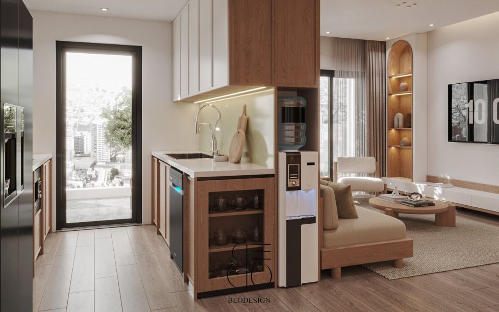 Không gian được bố trí khoa học, tận dụng tối đa ánh sáng tự nhiên, kết hợp cùng vật liệu cao cấp và bảng màu tinh tế giúp tạo nên tổng thể hài hòa, đẳng cấp.