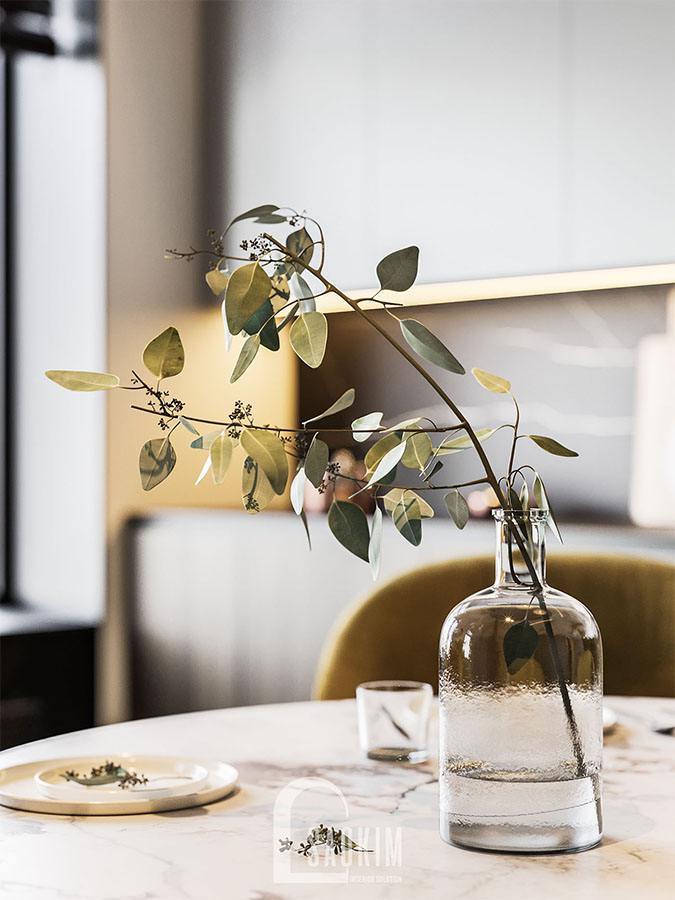Lọ cây nhỏ xinh trên bàn tạo cảm giác gần gũi, thân thiện cho không gian.