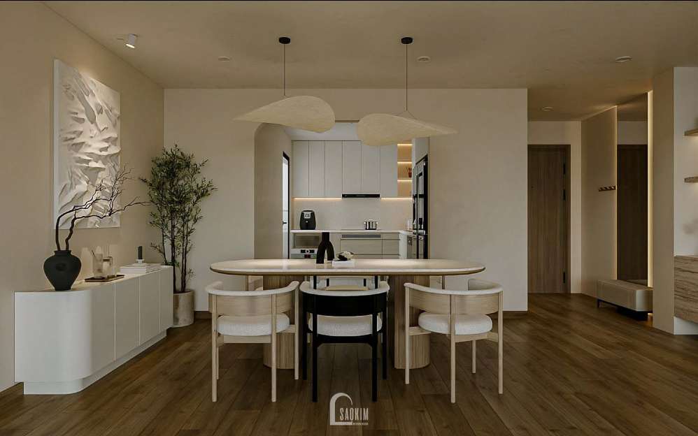 Thiết kế nội thất phòng khách+ bếp phong cách Modern Minimalist