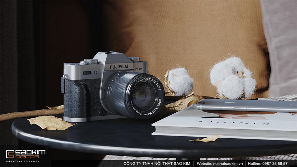 Bàn trà là hai khối trụ làm bằng chất liệu bê tông khá đơn giản và đẹp một cách đặc trưng. Nó mang đến không gian thiết kế căn hộ 1 phòng ngủ hơi thở hiện đại và vẻ đẹp tinh túy của thời gian.