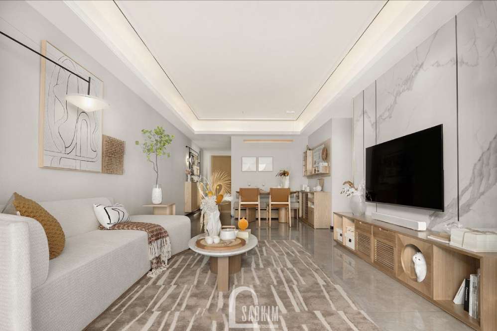Thiết kế nội thất phòng khách+ phòng bếp trong phong cách Muji tối giản
