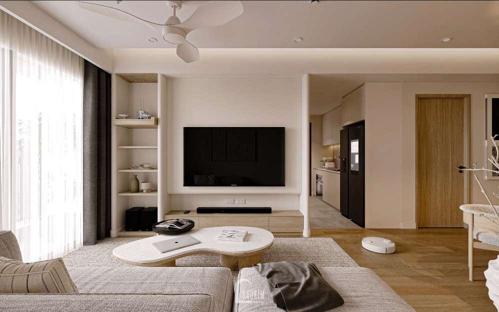 Thiết kế nội thất phòng khách tập trung vào việc tối giản hóa không gian và chỉ giữ lại những yếu tố cần thiết nhất.