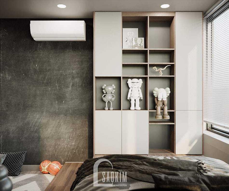 Khác với những không gian khác trong thiết kế nội thất căn hộ chung cư cao cấp, phòng ngủ bé trai mang vẻ đẹp cá tính, năng động hơn. Gam màu gỗ kết hợp cùng màu đen, xám sẽ là sự kết hợp tuyệt vời trong thiết kế phòng ngủ cho bé trai.