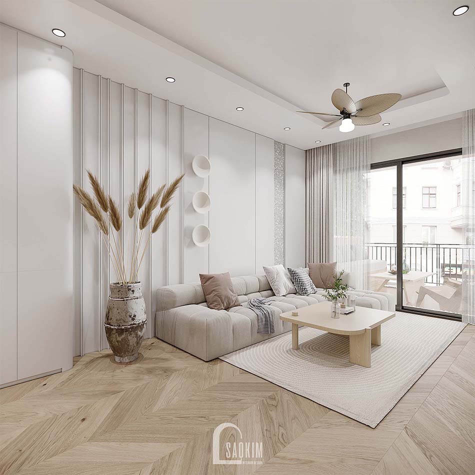 Không gian thiết kế nội thất chung cư Feliz Homes Hoàng Mai rộng thoáng nhờ cách phối màu và bố trí nội thất.
