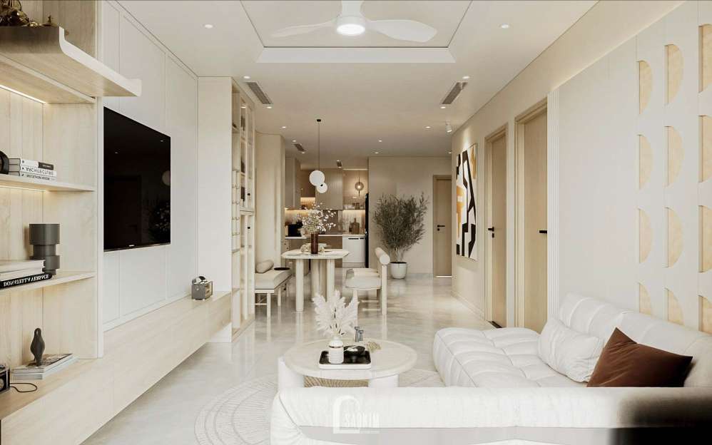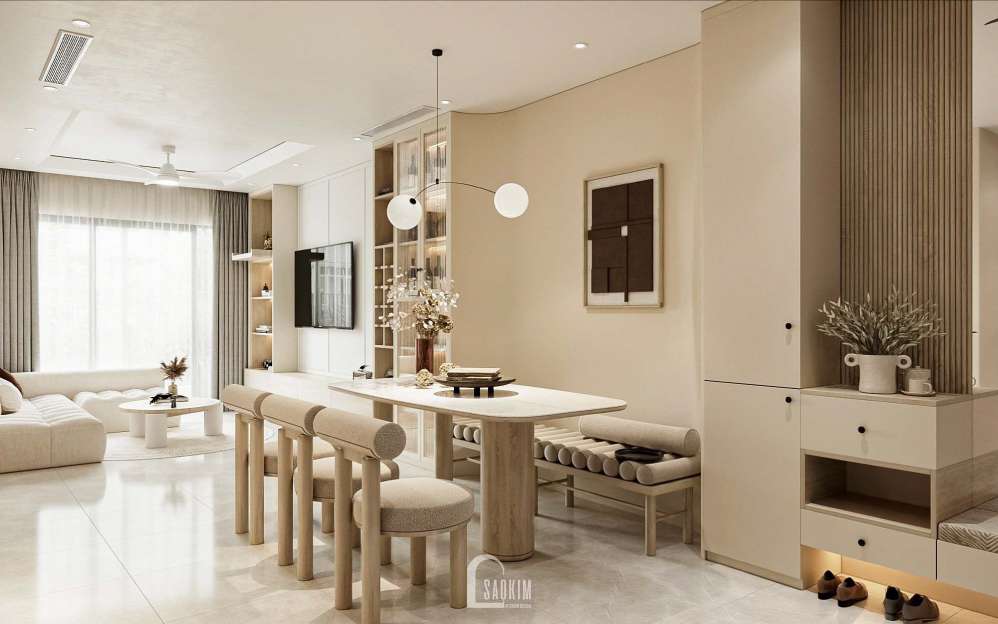 Thiết kế chung cư phong cách Korea Chic sử dụng các vật liệu tự nhiên như da, lanh,... và nguyên liệu tự nhiên khác được sử dụng để làm ghế sofa, và các món đồ nội thất trong căn phòng tạo nên một không gian thư giãn, thoải mái để sống trọn vẹn trong từng khoảnh khắc.