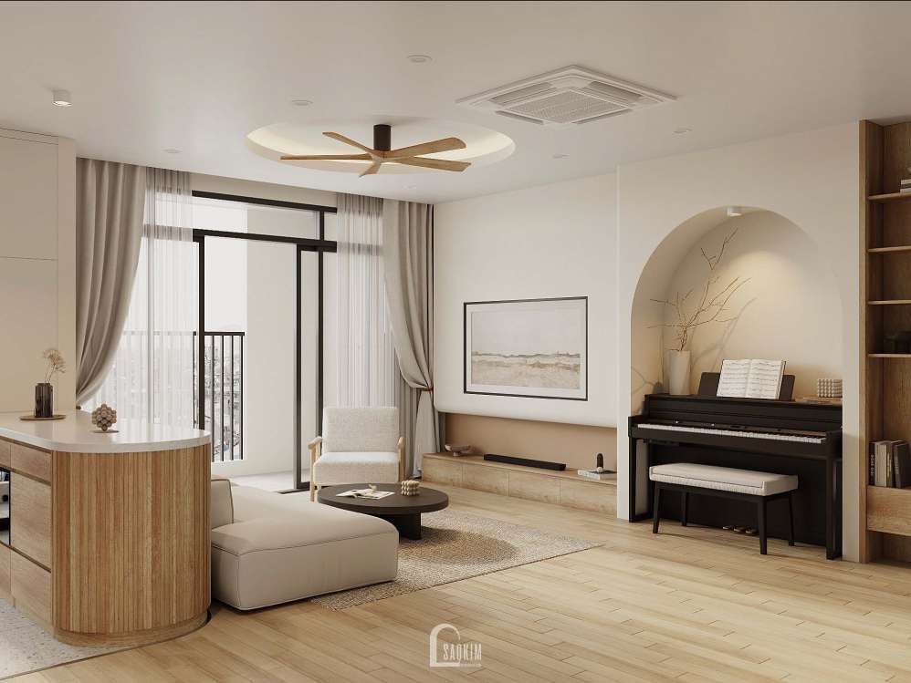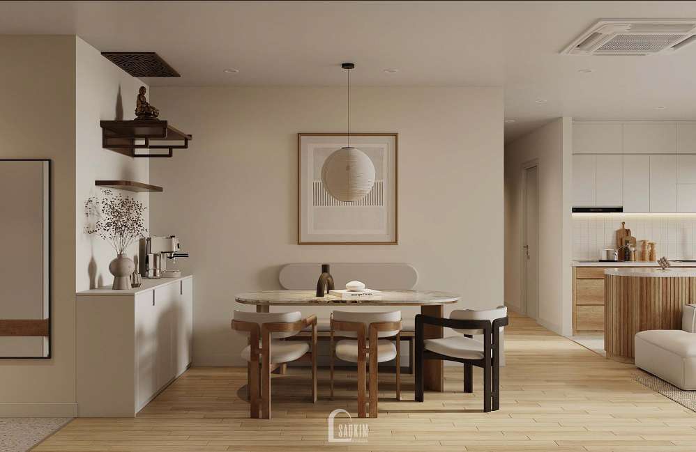 Thiết kế chung cư phong cách Minimalist với gam màu trắng, kem đơn giản mà vẫn tạo ra sức hút trong căn hộ.