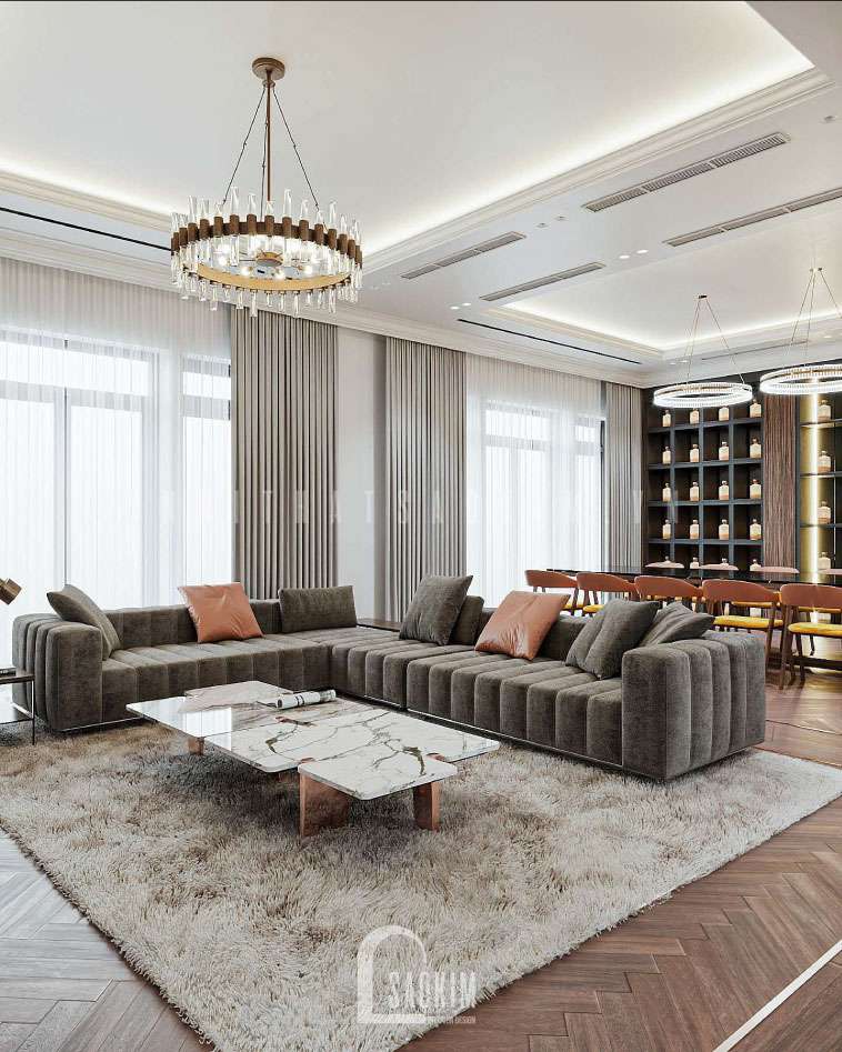 Thiết kế đập thông 2 căn liền kề Louis City thể hiện được nét cá tính riêng biệt của chủ nhân, truyền tải trọn vẹn tinh thần của phong cách hiện đại, gây ấn tượng với màu sắc sang trọng, tinh tế cùng công năng tiện nghi. Việc kết hợp gam màu sáng tối cùng sự phong phú của vật liệu chính là yếu tố quyết định nét sang trọng cho không gian thiết kế nội thất nhà liền kề hiện đại. Vì thế, Nội Thất Sao Kim đưa ra giải pháp tối ưu nhất từ công năng đến tài chính cho gia chủ. Cùng tìm hiểu về cách thiết kế nhà liền kề đẹp và tiện nghi này nhé.