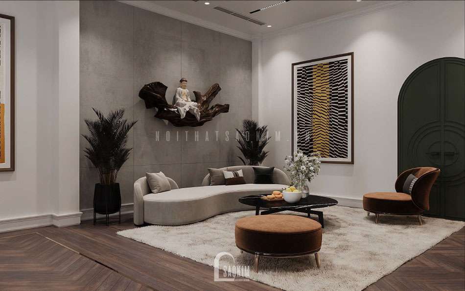 Thiết kế nội thất phòng khách nhà liền kề Louis City Hoàng Mai đẹp theo phong cách hiện đại