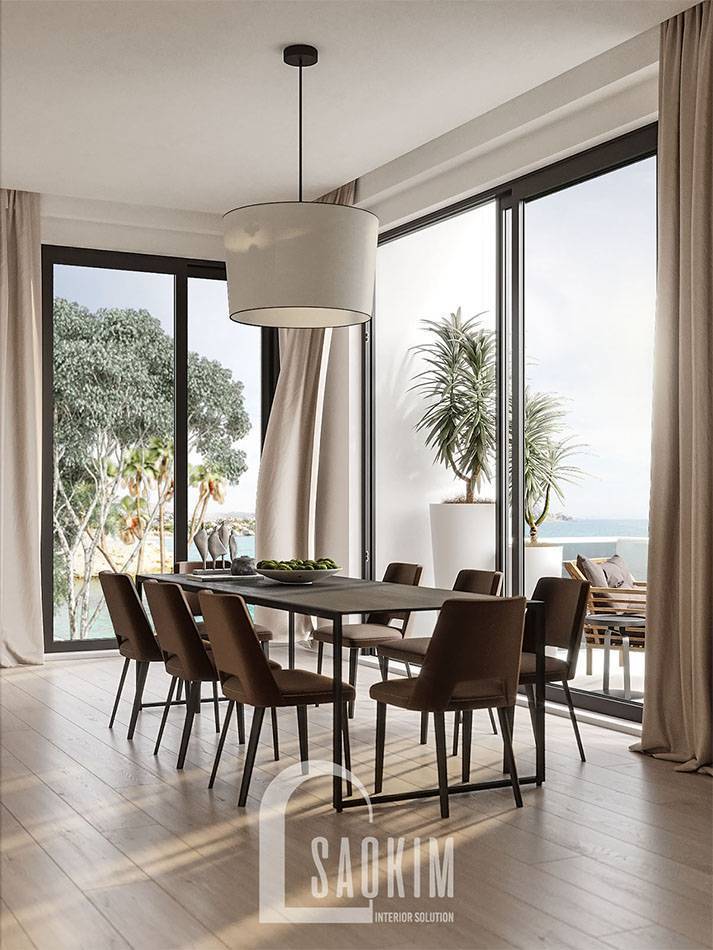 Thiết kế phòng bếp biệt thự biển cao cấp dưới đây không chỉ đảm bảo về mặt công năng mà còn đảm bảo cả những yếu tố thẩm mỹ. Không gian bếp tươi mới, thoáng đãng được bao phủ bởi gam màu trắng. Phòng bếp biệt thự chú ý đến ánh sáng và những chi tiết trang trí mang đến vẻ đẹp độc đáo, cuốn hút cho nơi đây.