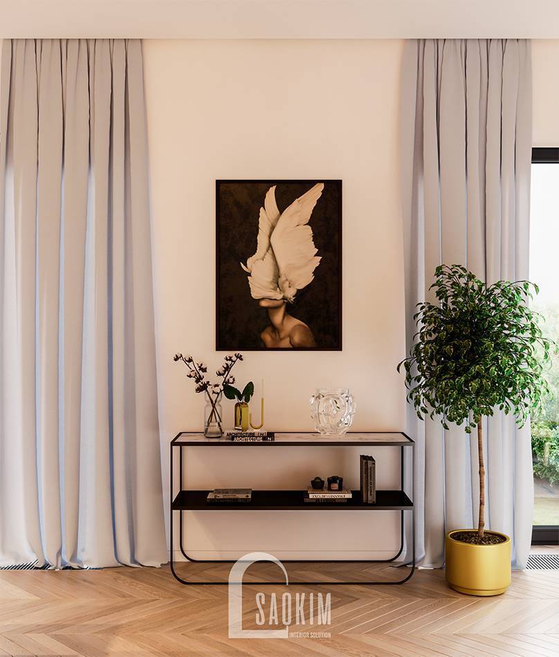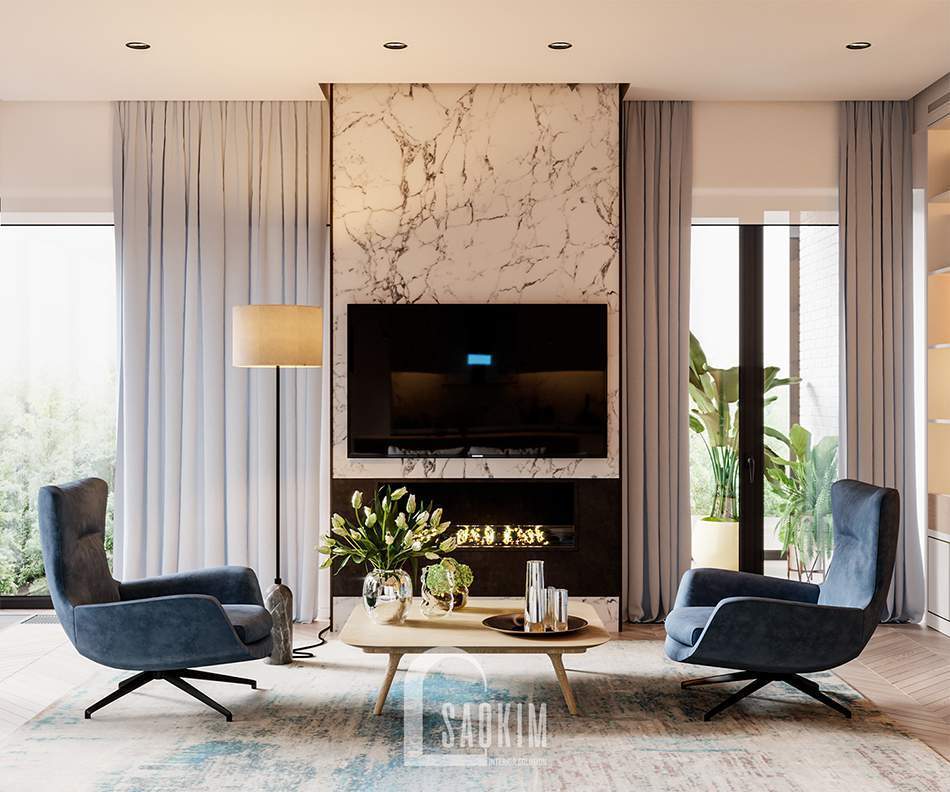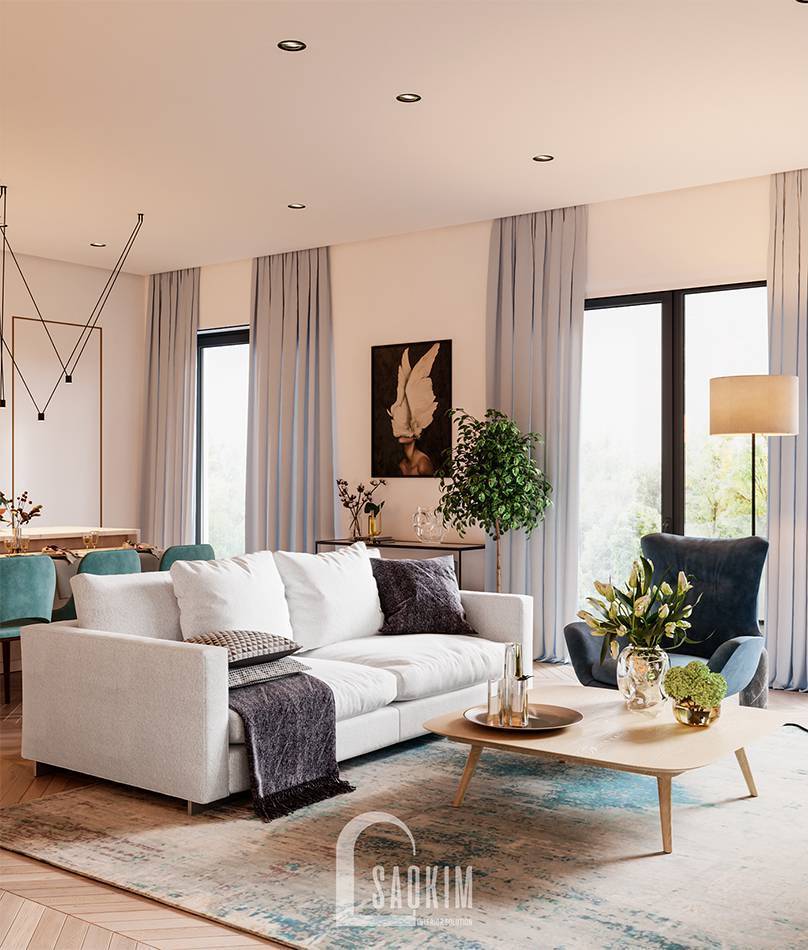 Phòng khách là không gian vô cùng quan trọng trong mỗi căn nhà. Bởi đây là nơi gia chủ tiếp đón khách quý. Đồng thời đây cũng là nơi sinh hoạt chung của gia đình. Thiết kế phòng khách cao cấp căn hộ 131,7m2 Vinhomes West Point mang đến vẻ đẹp sang trọng, quý phái cho gia chủ. Không gian phòng khách nơi đây giúp cho gia chủ nâng cao vị thế và đẳng cấp của mình.