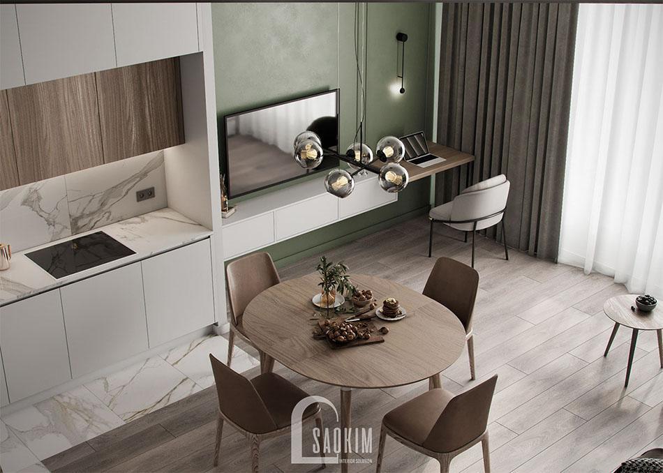 Mẫu thiết kế phòng khách và bếp căn hộ 85m2 Golden Palace Mễ Trì toát lên vẻ sang trọng, thanh lịch. Phòng ăn và bếp được bố trí liên thông với phòng khách mang đến không gian sinh hoạt chung tiện lợi cho những thành viên trong gia đình. Hãy cùng nội thất Sao Kim chiêm ngưỡng vẻ đẹp của không gian này nhé!