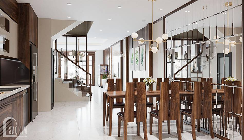 Thiết kế phòng khách và bếp nhà phố 3 tầng Âu Cơ Tây Hồ có thể nói là một nghệ thuật. Nơi đây thiết kế theo phong cách hiện đại toát lên vẻ sang trọng, đảm bảo tiện nghi. Các vật liệu, màu sắc kết hợp hài hòa giúp không gian trở nên lôi cuốn và bắt mắt hơn. Từng đường nét, chi tiết được chăm chút tỉ mỉ kĩ lưỡng mang đến không gian sinh hoạt chung thoải mái và ấm cúng.